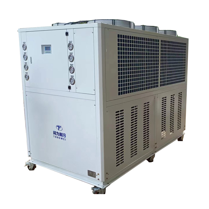 Stationary air cooled water chiller capacity range is from 30kw to 1000kw, water cooling temperature is adjustable from 5 to 30 ℃,it need be piped to a pump and a separate water tank to function.The chiller can be used with one ,two ,three or four compressors(three and four compressors is scroll compressor) , and each compressor has an independent refrigeration circuit. All compressors are under the command of a unified microcomputer control system, which can be turned on and off one by one without interfering with each other. Stationary air cooled water chiller is all made of original and genuine products, single machine failure rate is very low. Considering the above reasons, the chiller can be guaranteed to have a highly stable performance.